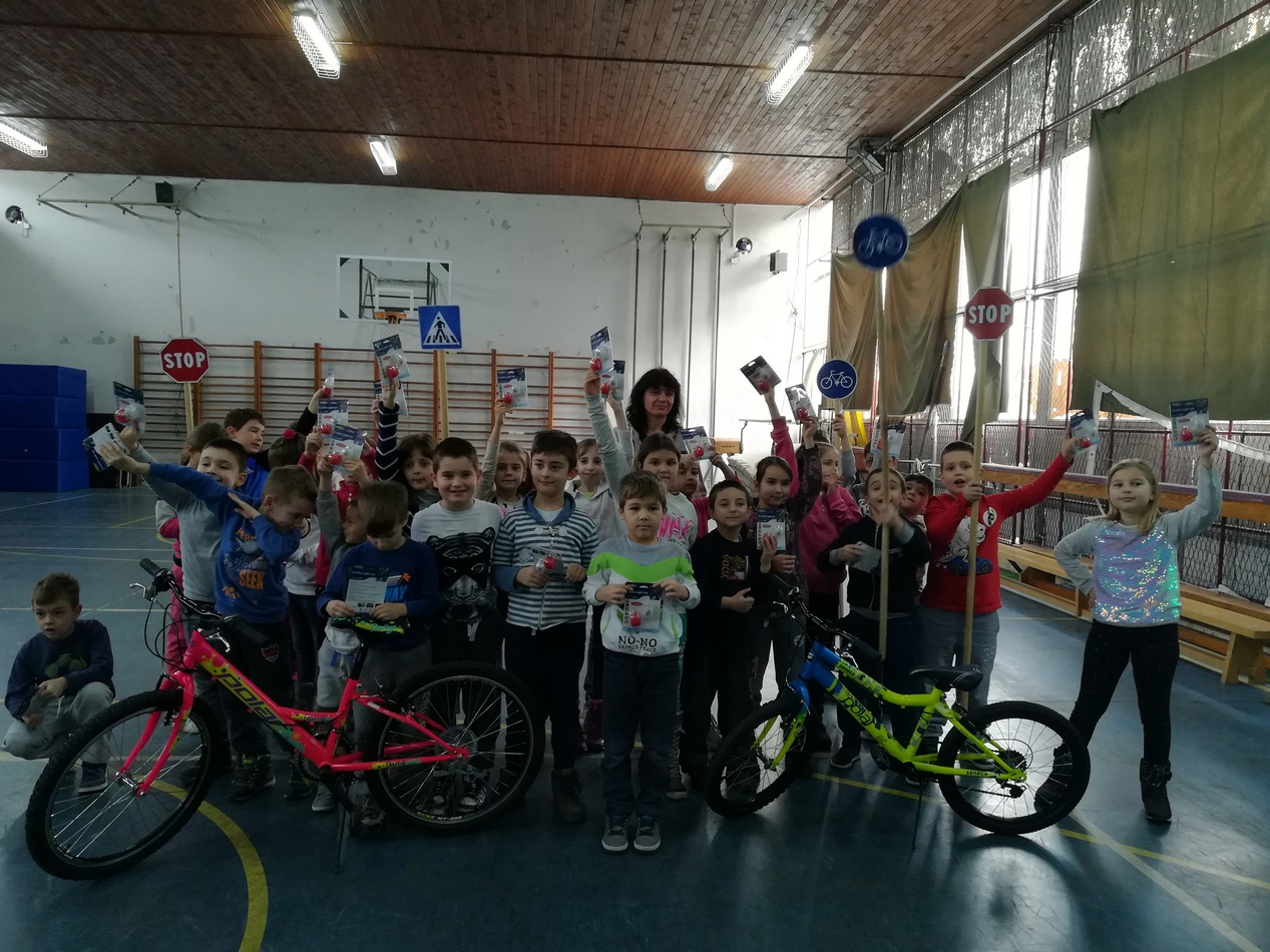 Svi učenici učesnici u pilot projektu, dobili su poklon setove svetlosne signalizatore za svoje bicikle.